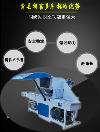 圓木多片鋸的構架是有:機架部分、輸送機構、壓料機構,調速機構和電氣控制系統(tǒng)等部分組成。祥富圓木多片鋸安全可靠、鋸口小,不燒鋸片,不卡機,質量好,哪里賣圓木多片鋸質量好?山東曹縣祥富多片鋸有限公司歡迎大家的到來!